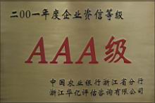 二00一年度企業(yè)資質(zhì)等級(jí)AAA級(jí)